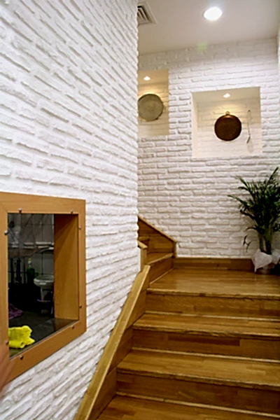 Azerbaycan'da popüler kültür tuğlası, mekana sıcaklık ve rustik bir hava katar.